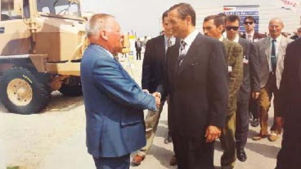 Paul Legueu presents the ACMAT Stand to the Minister of Defence François Léotard at the Eurosatory Exhibition of 1994.