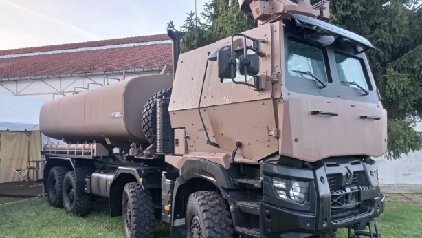 Pour le FED 2021, l’Armis 8x8 est présenté dans sa version cabine blindée, en configuration citernier. Il est équipé d’une citerne de 18m3 de TITAN DEFENSE, illustrative de sa capacité à répondre aux besoins futurs des armées, et d’un tourelleau télé-opéré Hornet Lite assurant l’auto-protection du véhicule. Le Hornet Lite est d’ores et déjà en service au sein de l’armée de Terre sous la désignation T2.