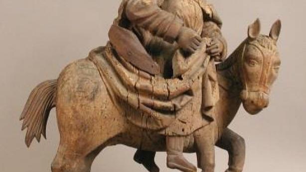 Saint Martin sharing his cloak. 16th century wooden sculpture, Germany